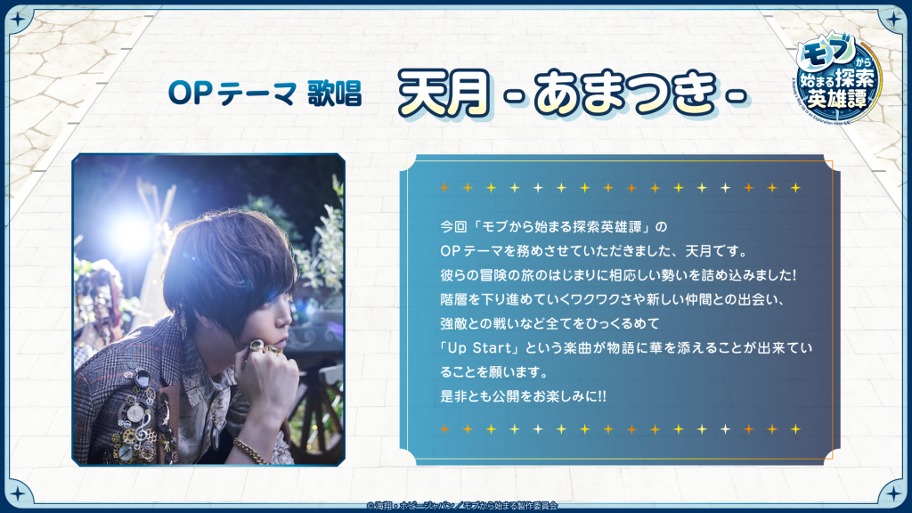 TVアニメ『モブから始まる探索英雄譚』のOPテーマは天月-あまつき-さんの「Up Start」、EDテーマはMay’nさんの「ストロボ・ファンタジー」に決定いたしました!合わせてアーティストコメントも到着!