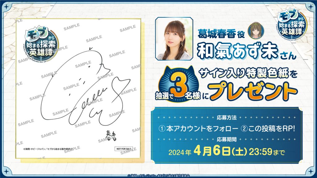 TVアニメ『モブから始まる探索英雄譚』公式Xアカウントでは、本日3月24日(日)から葛城春香役 和氣あず未さんサイン入り特別色紙のプレゼントのフォロー&RPキャンペーンを実施いたします。